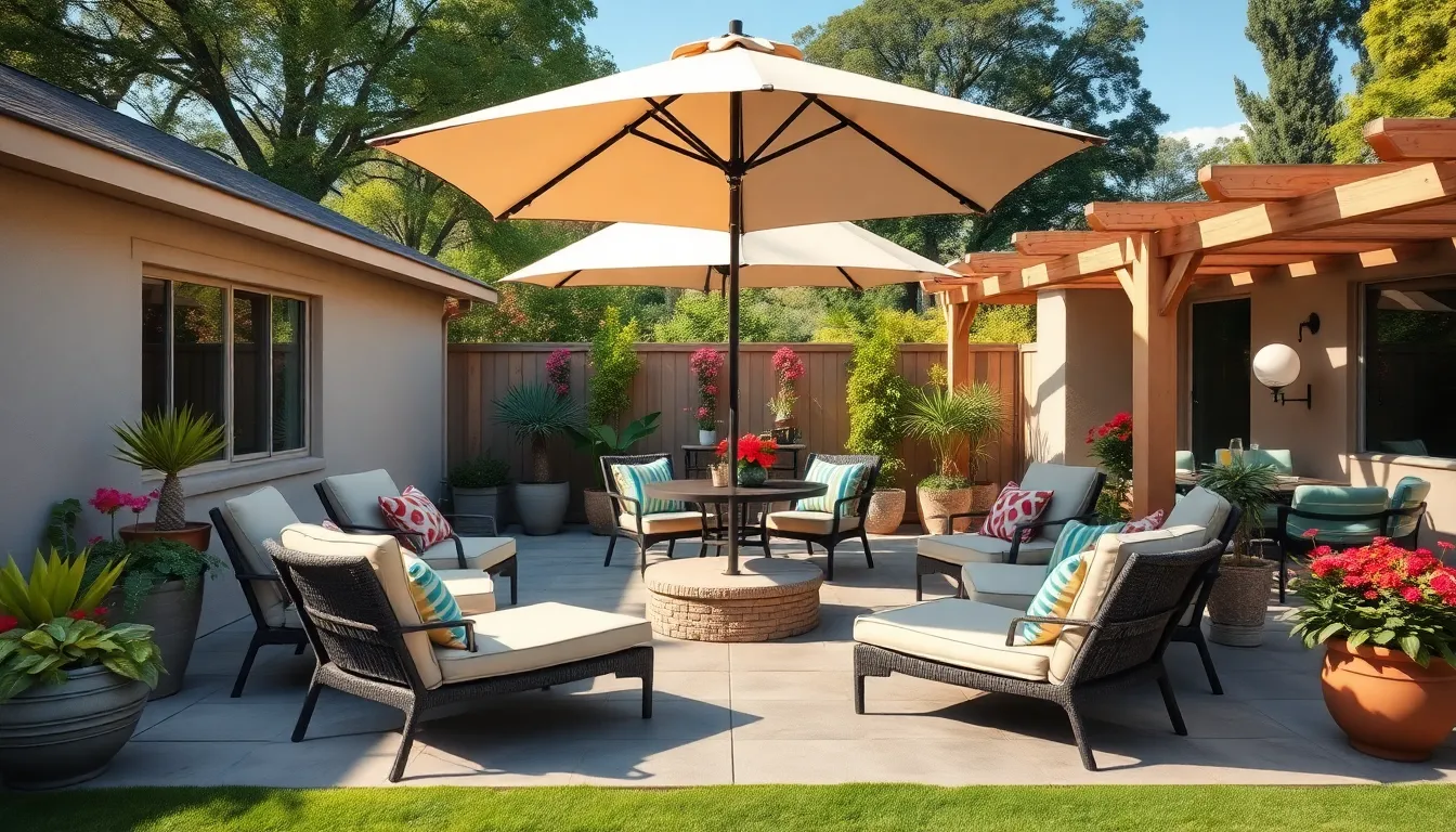Choosing the right outdoor furniture creates a comfortable setting. Consider weather-resistant materials like teak or aluminum for durability. Prioritize diverse seating options, such as sectionals, dining chairs, and lounge chairs. Arrange pieces to encourage conversation while providing ample space. Incorporate cushions in vibrant colors or patterns for style and comfort. Adding umbrellas or canopies ensures comfort during sunny days. Durable rugs can also define spaces, adding warmth to any area.